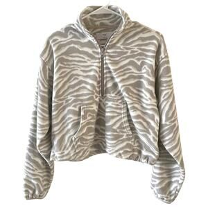 TNA Womens Animal Print Cropped Long Sleeve Fleece Jacket Gray White Small