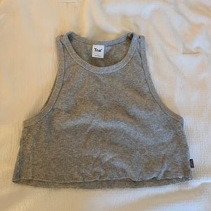 Never worn This is a cropped racerback tank with a high crew neckline and a raw hem. It's made from soft non-stretch 100% cotton.