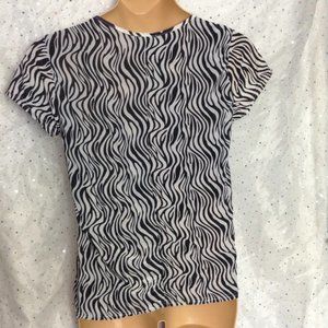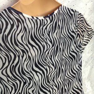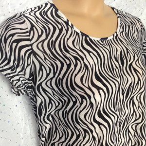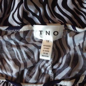 Take a walk on the wild side with this hot TNO black and white zebra top! Crew neckline is more navy, easy to wear with black or blue pants! Make a statement with this solo with a pair of jeans and heels or under a black blazer for work. 26 inches long. 95%polyester/5% spandex for just the right amount of stretch. 1X fits about a size 14. NEW but did not arrive with tags. Ships in plastic bag. (TN)