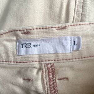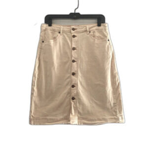 TNR Jeans Button Front Denim Skirt Cream Pink Knee Length Size Large