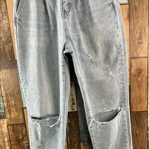 Fashionable light blue jeans with stylish distressing. Ideal for everyday wear.