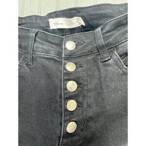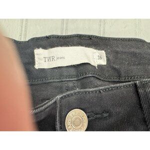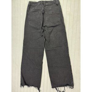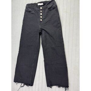 TNR Size 26 Womens Jeans Mid Rise Black Button Flt Crop Raw Hem Wide Leg