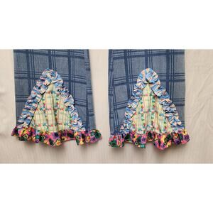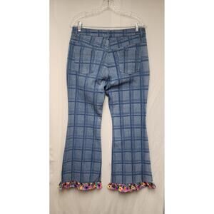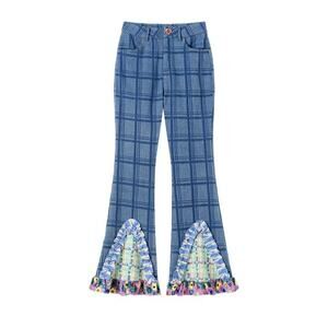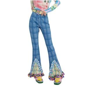 TNTNTUTU Women's Ruffled Splice Plaid Flared Pants Size XL Multicolor Blue