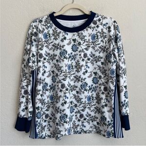 TNUCK SPORT White Wildflower Maggie Pullover Floral Striped Crewneck xl
