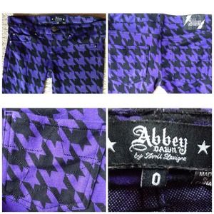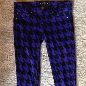 Purple and black houndstooth print Jeggings. Worn under 5 times. Size 0, I believe it’s true to size. Very soft and still looks newish. Made by Avril Lavigne.