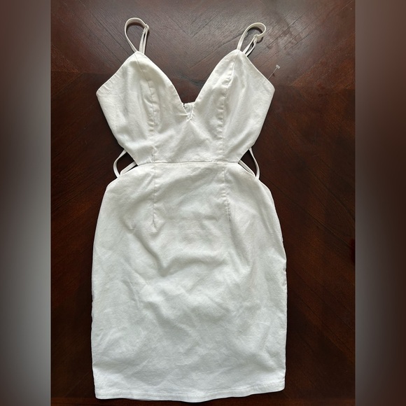 Chic white sleeveless dress with a stylish cut-out design. Perfect for any occasion.