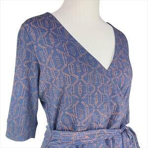 TOAD&CO Cue Wrap Cafe Dress w/ Attached Belt & Pockets Blue/Orange Size S