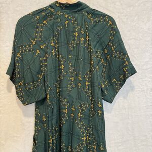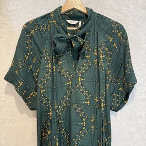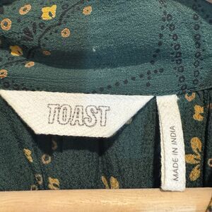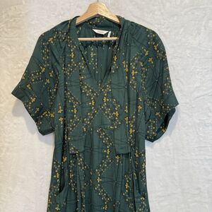 TOAST Bryn Midi Dress Pockets Green Navigation Print Floral Crepe Large