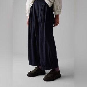 Inverted box pleats at the waist accentuate the volume through the wide cropped legs of our trousers. Crafted from relaxed cotton twill with low side welt pockets.