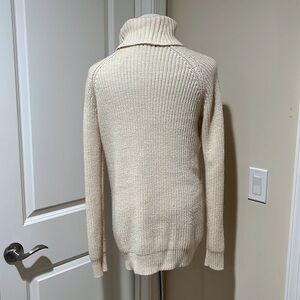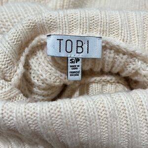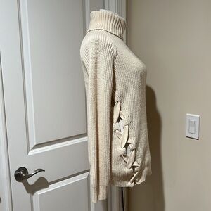 TOBI Sweater - Turtleneck Style - Criss Cross Sides - Medium Weight Sweater - Oatmeal Beige Coloring - Size Small - 100% Arcylic - Excellent Used Condition!