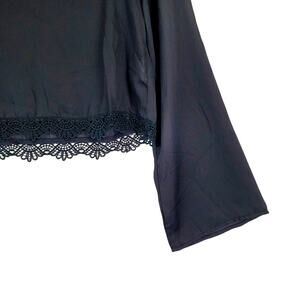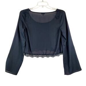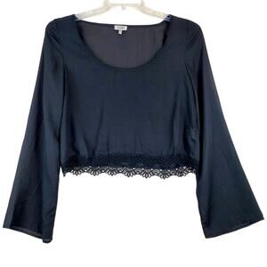 TOBI Black Sheer Crop Top (L) Crochet Lacey Trim Wide Sleeve Whimsigoth Blouse