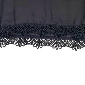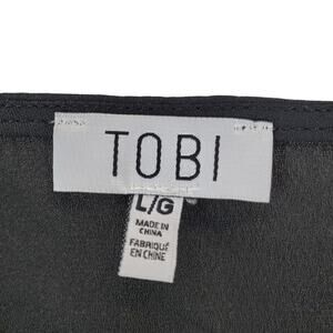 TOBI Black Sheer Crop Top (L) Crochet Lacey Trim Wide Sleeve Whimsigoth Blouse Very good condition. Lightweight, loose fit. Size: Large Approximate Measurements laying flat: Chest (armpit to armpit): 19" Length: 19" Sleeves: 25.5" casual, basic, neutral, basic, capsule, witchy, mesh, party, everyday, going out, festival, boho, whimsy