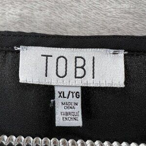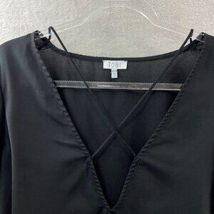 TOBI Blouse Womens XL Black Deep V Strappy Front Cross Straps Chiffon