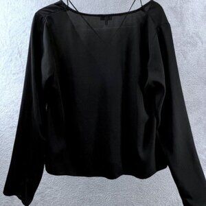 TOBI Blouse Womens XL Black Deep V Strappy Front Cross Straps Chiffon, long sleeve.