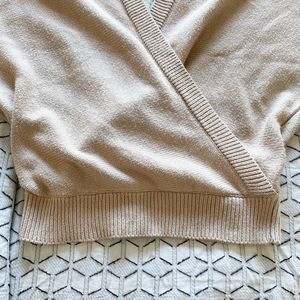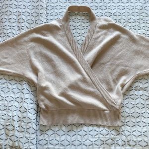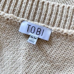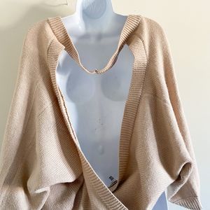 TOBI Cream Knit Open-Back Sweater Size S | Mock Wrap Long Sleeve Cozy Pullover