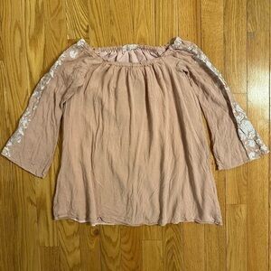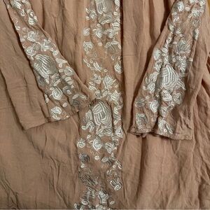 Dusty rose color tunic with white embroidery on sleeves and down front center