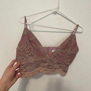TOBI Lauren Lace Cropped Top Mauve Pink / Purple V-Neck Scalloped Hem Crop Top M