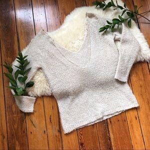 TOBI Low Cut Open V-Back Oatmeal Oversized Sweater One size