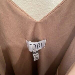 TOBI Neutral Ruched Contemporary Cocktail Faux Wrap Going Out Stretch Bodycon Mini Dress
