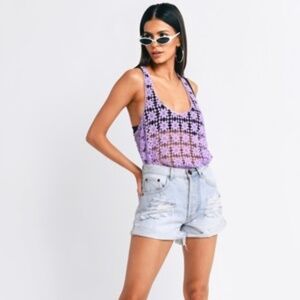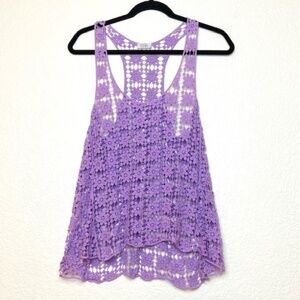 TOBI Purple Floral Crochet Festival Tank Top Med