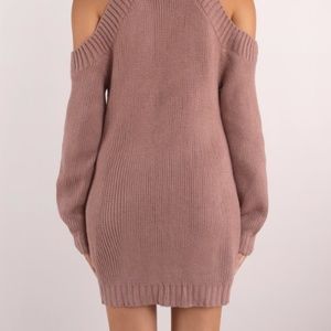 Bring on the cold. You're going to love the fit of the Half Thought Sweater, featuring a sexy mock neck and cold shoulder cut outs. This Rose knit sweater dress will look fab with sock booties. Let this be your new fall uniform!