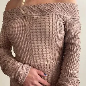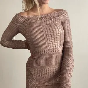 DISCLAIMER zipper has a SLIGHT defect which does not affect the functionality of the dress or it’s ability to be zipped - the two photos featuring the dress unzipped is simply because my arms cannot contort to zip the dress myself unfortunately😂 the dress has a nude lining and rose knit(?) material on top. The dress is very stylish and comfortable although there is limited ability to raise the arms when wearing, as the dress hugs the shoulders to stay in place (nothing that is too bothersome but if you intend to raise your arms straight into the air, it’s not the easiest thing to do. The dress does not slip up and covers just the right areas.