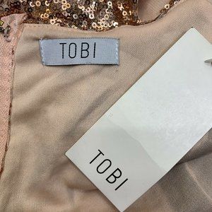 TOBI Rose Gold Dress Sequin Cut Out Mini Dress