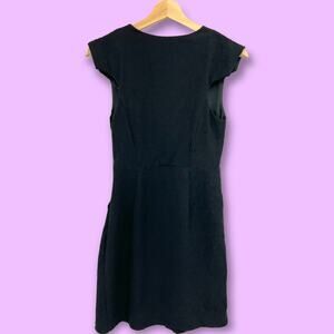 TOBI SMALL Black Pleated Plunge V Neck Cap Sleeve Tulip Hem Mini Dress