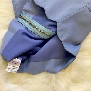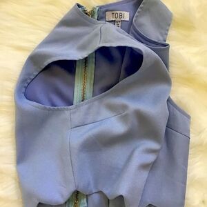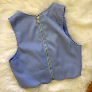 TOBI Scalloped edge Light Blue Crop Top Size XS. Fully lined with full back zipper closure. Preloved excellent condition with zero flaws.