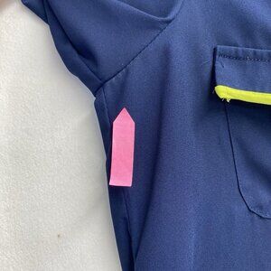 Elevate your wardrobe with this stunning navy blue long sleeve blouse from TOBI. This semi-sheer blouse features a crew neck and a slit design that adds a touch of sophistication to your look. The pullover closure makes it easy to wear, while the pockets provide ample space for your essentials. Perfect for any occasion, whether it's a casual day out or a business meeting, this blouse is made of 100% polyester and is machine washable for easy care. The chiffon fabric type gives it a lightweight and airy feel, making it suitable for all seasons. The blouse is available in size small and has a regular fit. Add this versatile piece to your collection and make a statement wherever you go.