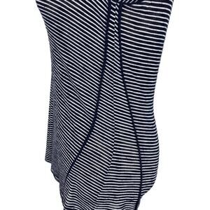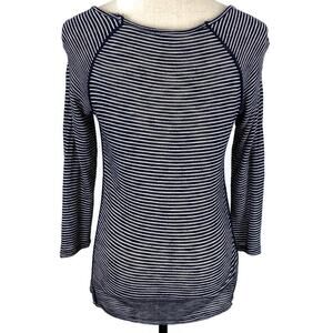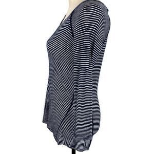 TOBI Slub Panel Blouse Navy Blue White Striped 3/4 Sleeve Scoopneck Womens