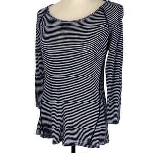 TOBI Slub Panel Blouse Navy Blue White Striped 3/4 Sleeve Scoopneck Womens