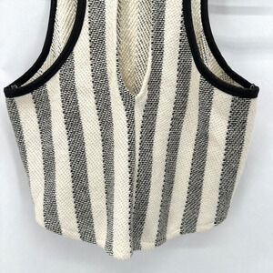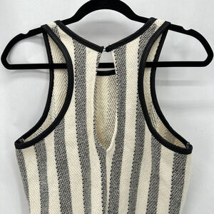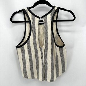 TOBI Tank Top Cropped Knit Black Ivory Striped Size M Keyhole Back Preppy Glam
