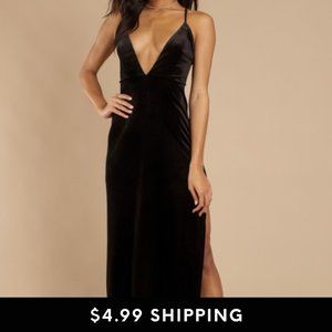 TOBI Velvet Got It Good Plunging Black Maxi Dress