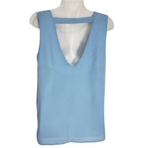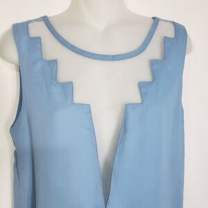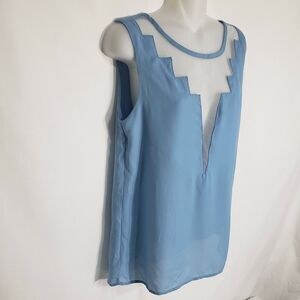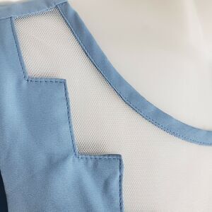 TOBI Womens Blouse Top Size Small Blue Cut Out Mesh Sheer Sleeveless Polyester