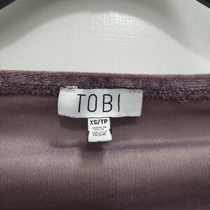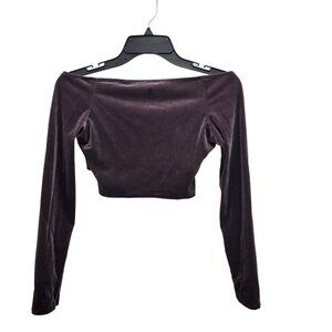 TOBI Women's Rain Drop Crop Top Plum Velvet Off Shoulder LS Wrap Top Size XS