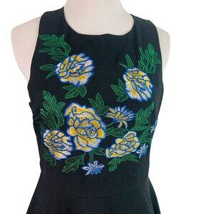 🟣🟣🟣 TOBI Women's Size Small Black Embroidered Floral Tunic Dress
