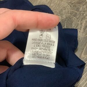 In EUC, size small. Beautiful cascading ruffle in the front. Smoke free home, ships next day.