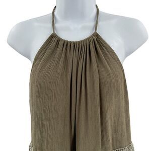 TOBI Lace Trim Halter Tank Top Olive Green