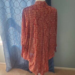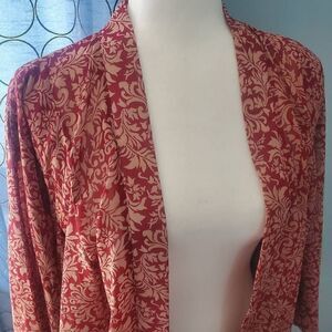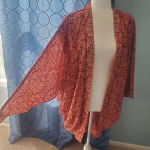 TOBI. maroon and cream boho design, sheer lightweight, open front, dolman sleeves cardigan shawl type top. Size medium. Oversize and flowy.