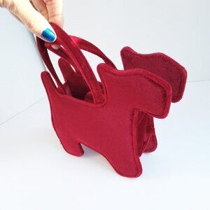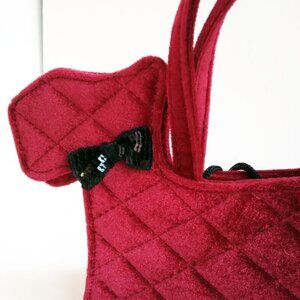 TOBY N.Y.C. Burgandy Velvet Quilted Scottie Dog Black Sequin Bow Satchel Mini Bag