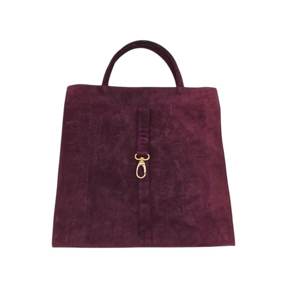 TOCCA Burgundy Suede Tote Bag – Made in USA, Gold Clasp, Vintage & Rare