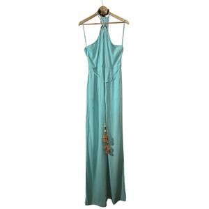 TOCCIN O-Ring Halter Jumpsuit Womans 14 Turquoise Resort Vacation