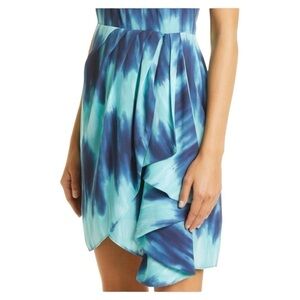 Toccin Pleated Faux Wrap Blue Ombre Tye Dye Sarong Halter Mini Dress Size 4 NEW