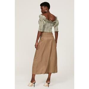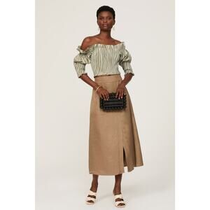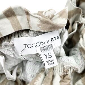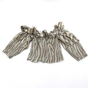 TOCCIN Smocked Ruffle Top Green Off-Shoulder Zebra Striped Puff Sleeve Sz XS