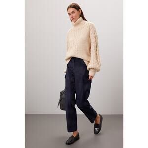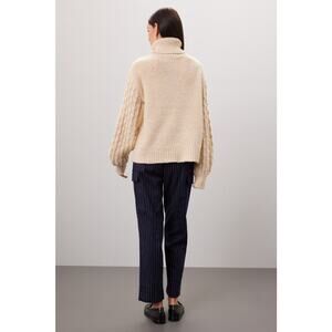 Off-white knit (66% Acrylic, 12% Polyester, 10% Nylon, 8% Wool, 4% Alpaca). Sweater. Long sleeves. Turtleneck. Pull on. 24"" from shoulder to hemline. Imported.