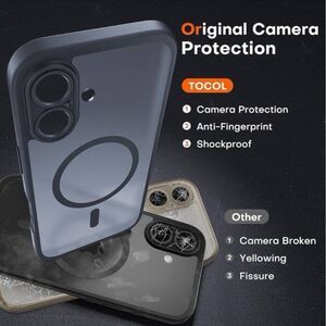 TOCOL Iphone 16 Black Magnetic Black Magsafe Compatible Case Matte Translucent. Brand new in open box. Stored in a smoke-free environment.