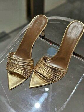 Elegant metal bar detailing across the vamp