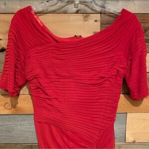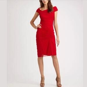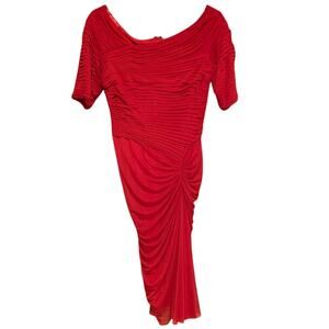 TODASHI SHOJI Asymmetric Ruched Mesh Dress Style 738814MX Vibrant Red Size S