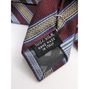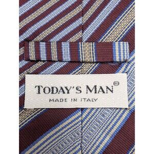 TODAY'S MAN Men's 100% Silk Tie Made in Italy Striped Burgundy Blue Gold Career